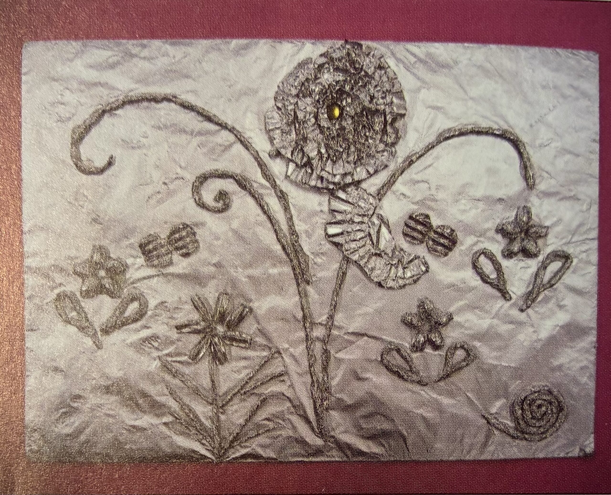 *ポイント 鉛筆は、細かく描けますが、アルミ板で打ち出すと、分かりづらくなってしまいます。できるだけ大きくシンプルな形を考えましょう。